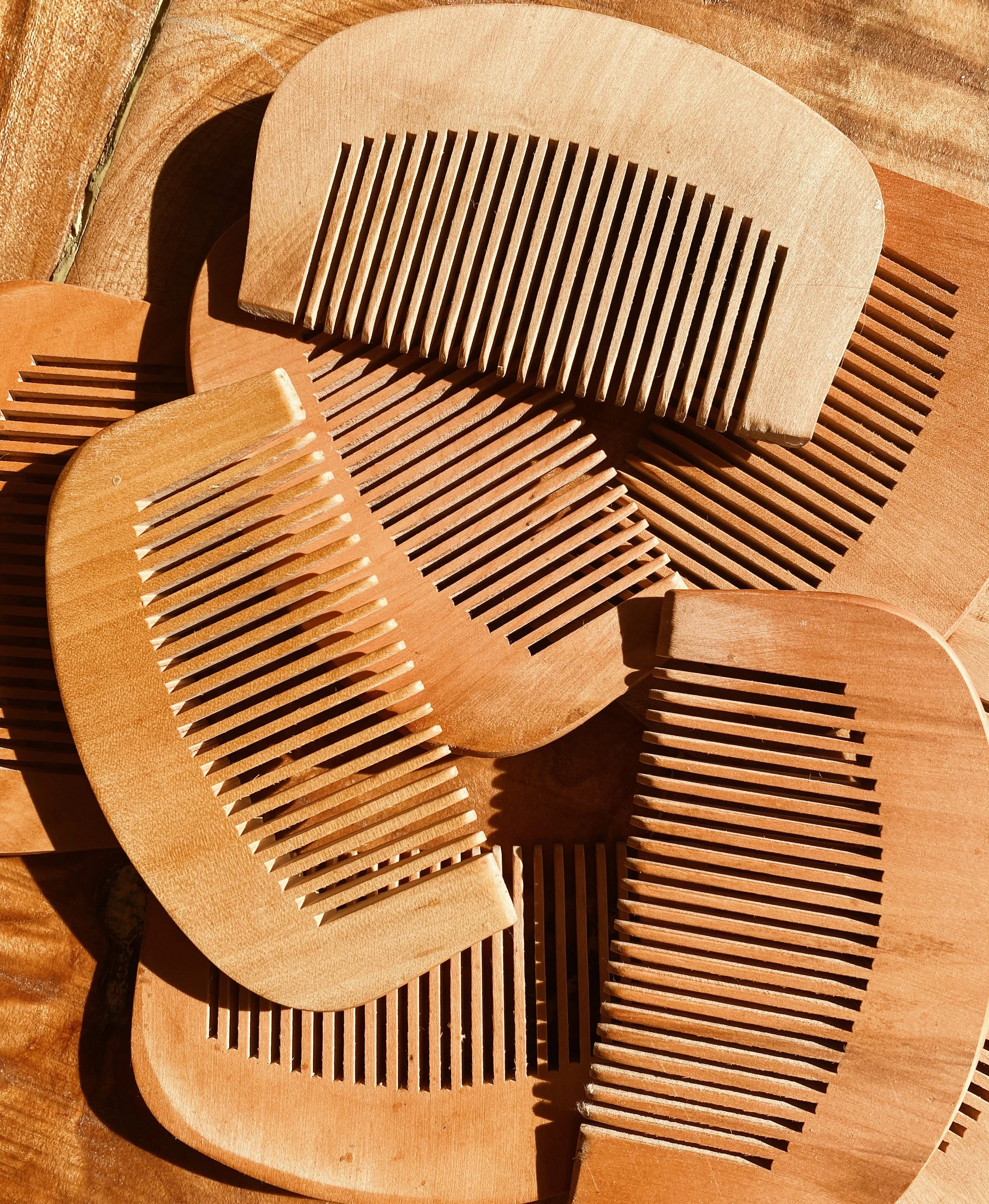 To use a wooden birth comb during labor, you apply gentle pressure to your palms for the duration of a contraction, and release the pressure when the wave subsides. The comb’s textured surface stimulates acupressure points, promoting the release of endorphins, which can help reduce the perception of pain. (Check out the Gate Control Theory to learn more!)